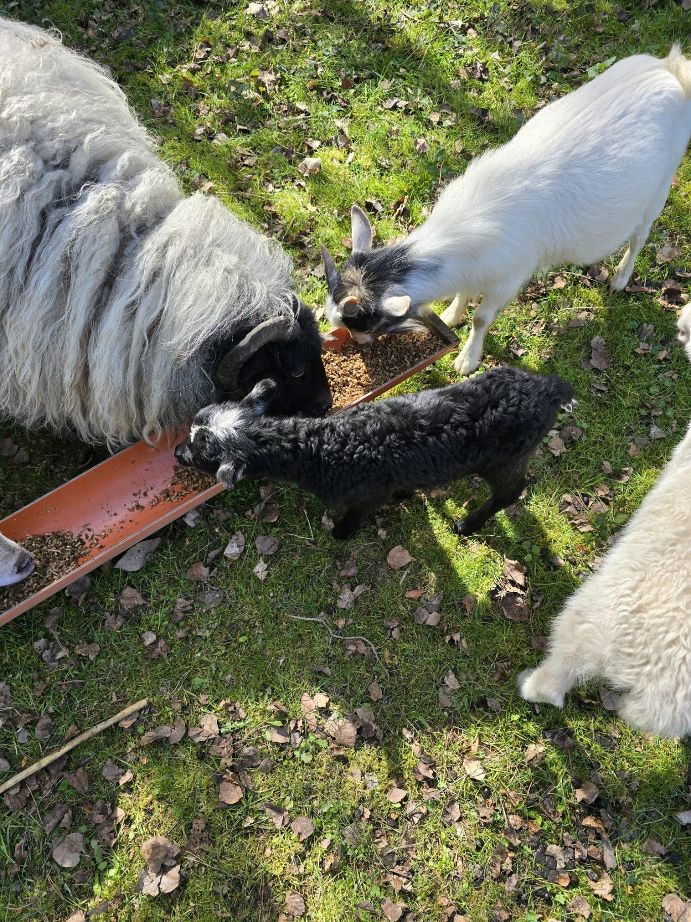 Hafrun wurde im Frühling 2024 zusammen mit ihrem Bruder Dodo geboren. Sie ist ganz weiß und hatte als Lamm einen schwarzen Fleck auf dem Kopf der nun verblasst. Sie stammen beide von ihrer Mama Nanni ab die einzige Heidschnucke mit einer schwarzen Brust.